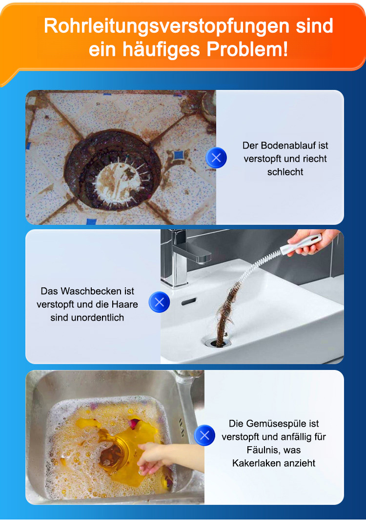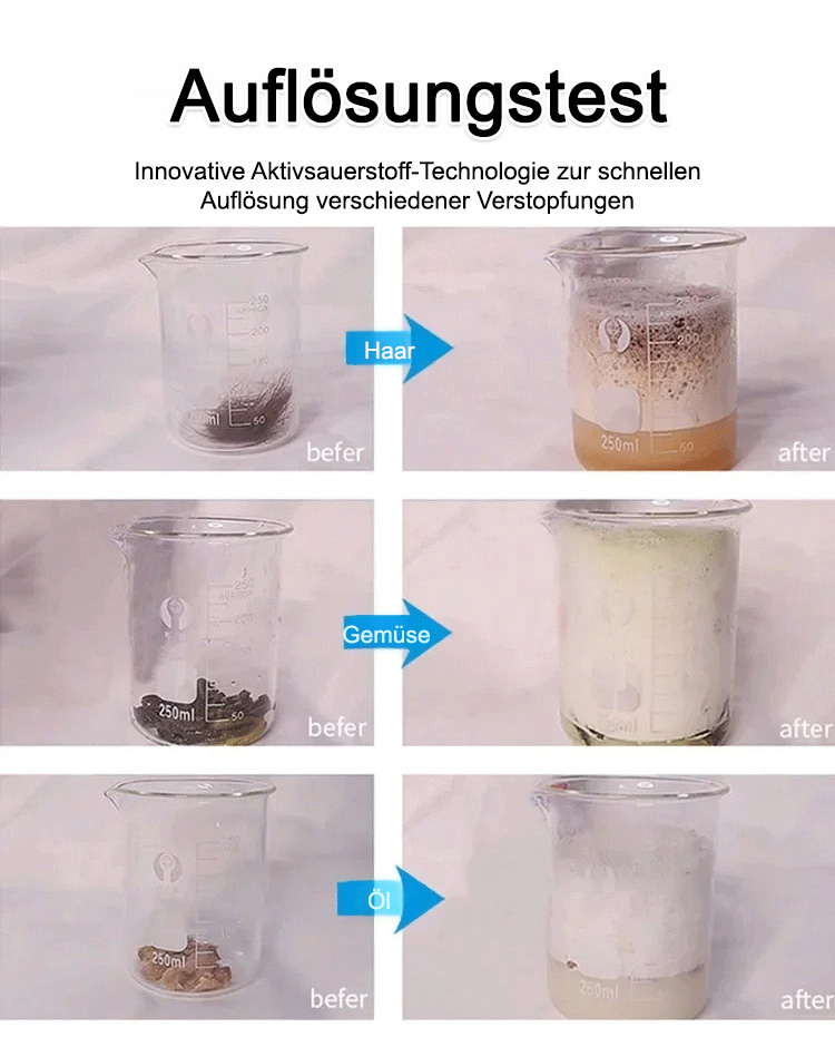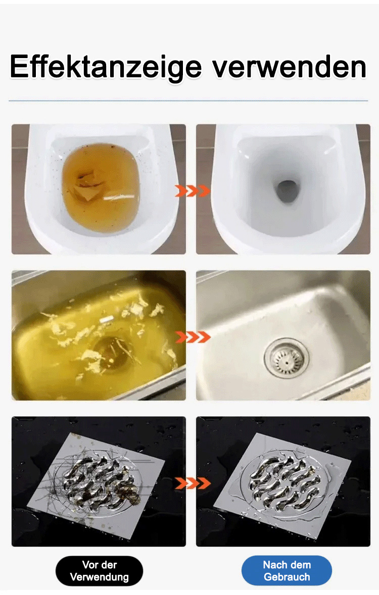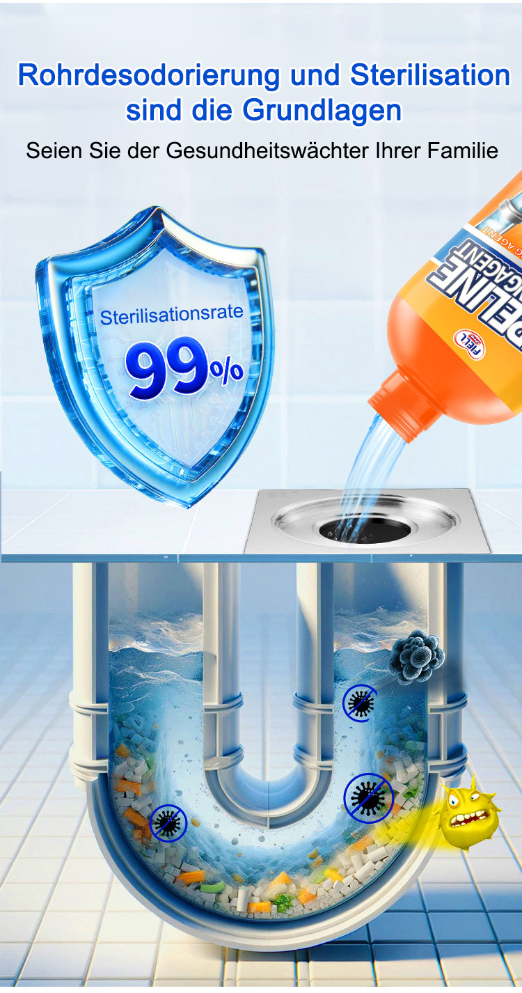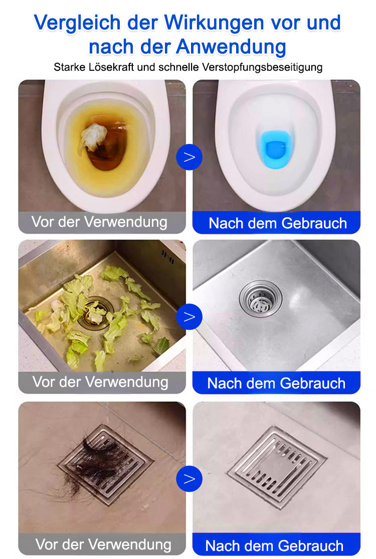 Rohrreinigung, Geruchsentfernung und Schädlingsbekämpfung in einem, umweltfreundlich und ohne Verschmutzung, selbst die hartnäckigsten Verstopfungen können leicht beseitigt werden, geeignet für alle Rohrleitungen.