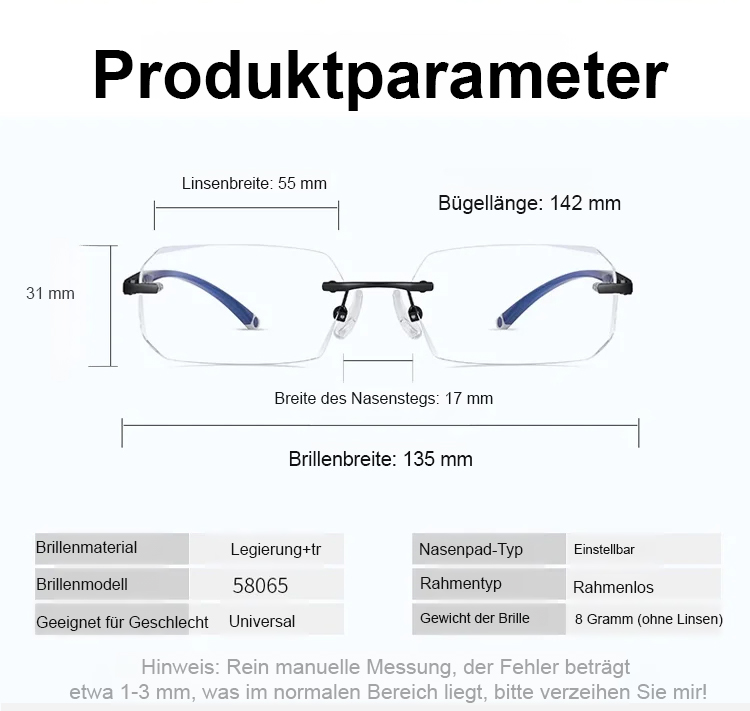 Diamantgeschliffener Rand Randlose Anti-Blaulicht-Farbwechselbrille【Kaufen Sie 1 und erhalten Sie 1 gratis】Keine Sehtests mehr: Die Autofokus-Technologie passt sich automatisch an Ihre Sehkraft an.