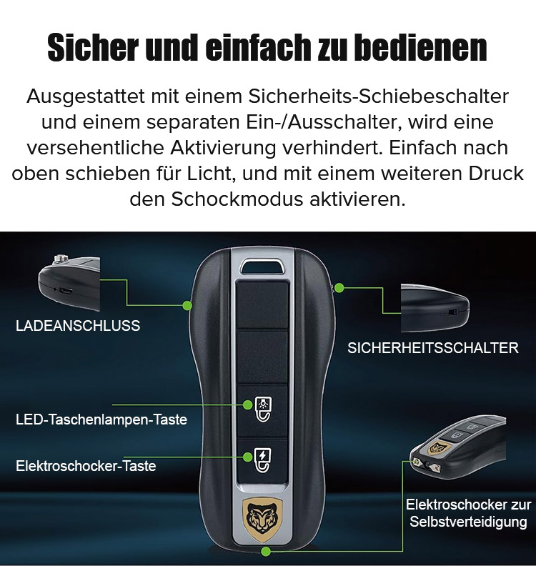 Löst innerhalb einer Sekunde einen durchdringenden 120-Dezibel-Alarm und einen 180.000-Volt-Elektroschock aus, der Kriminelle sofort erschreckt und abschreckt!【Wichtig: 10-fache Geld-zurück-Garantie bei Nichterfüllung!!】