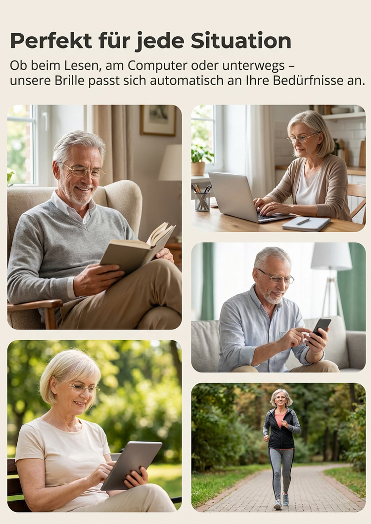 🔥Automatischer Zoom, kein Sehtest nötig, 99,9 % effektiver Blaulichtschutz für Ihre Augen🔥! 👍Ultraleichtes Material (5 Gramm), spürt man kaum!👍 ✅Geeignet für Nah- und Fernsicht, ideal zum Gehen, Autofahren, Fernsehen, Lesen und mehr. ✅Kein häufiges Absetzen nötig; das weite Sichtfeld sorgt für klare Sicht in der Nähe und Ferne.